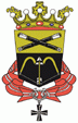 Poikittain jaettu kilpi, jossa kuvataan sen yläkentässä kultaisella pohjalla Suomen marsalkan, vapaaherra C.G.E. Mannerheimin marsalkansauvaa kaksin kappalein vinoristisuunnassa sekä alakentässä mustalla pohjalla ylöspäin suunnattu Savon maakunnan kultain