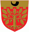 Punaisessa kentässä kultatammi ja sakarakoroinen kultalakio, jossa musta sarvi. Pitäjän monet muinaislinnat ovat antaneet aiheen sakarakoroon. Sarvi on Horn-suvun tunnus, tammi kertoo vehmaasta luonnosta ja vanhasta kartanokulttuurista.